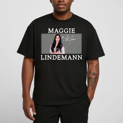 This T-shirt honors Maggie Lindemann with a stylish portrait showcasing her intense gaze and flowing hair, accented by her personal signature for an authentic touch. The bold “MAGGIE LINDEMANN” text frames the image, reflecting her bold pop-punk persona and fan connection.