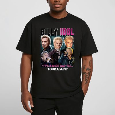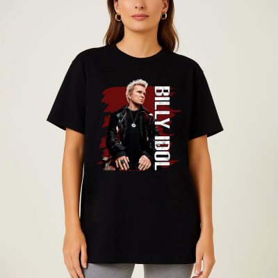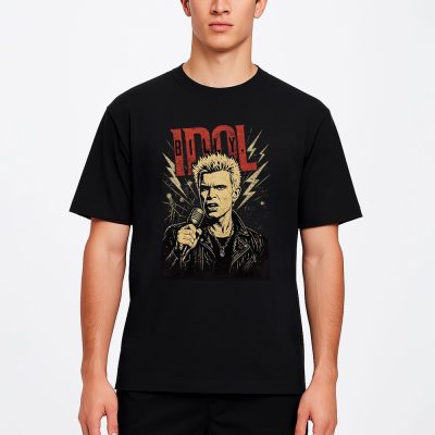 Channel rock legend style with this striking Billy Idol tee, featuring his iconic look and bold graphic backdrop. Perfect for fans who love classic punk attitude.