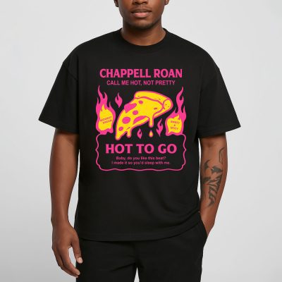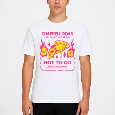 This T-shirt celebrates Chappell Roan with a playful design centered on a flaming pizza labeled “HOT TO GO,” nodding to her upbeat song and album vibes. The bold phrases “CALL ME HOT NOT PRETTY” and quirky lyrics like “Baby, do you like this beat? I made it so you’d sleep with me” bring out her sassy, empowering pop energy.