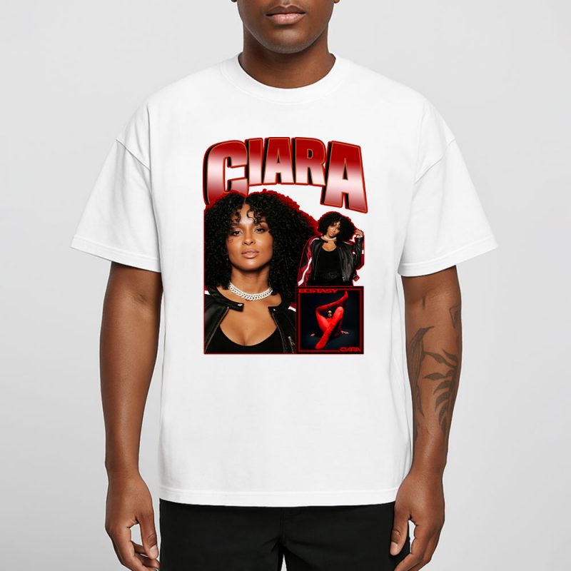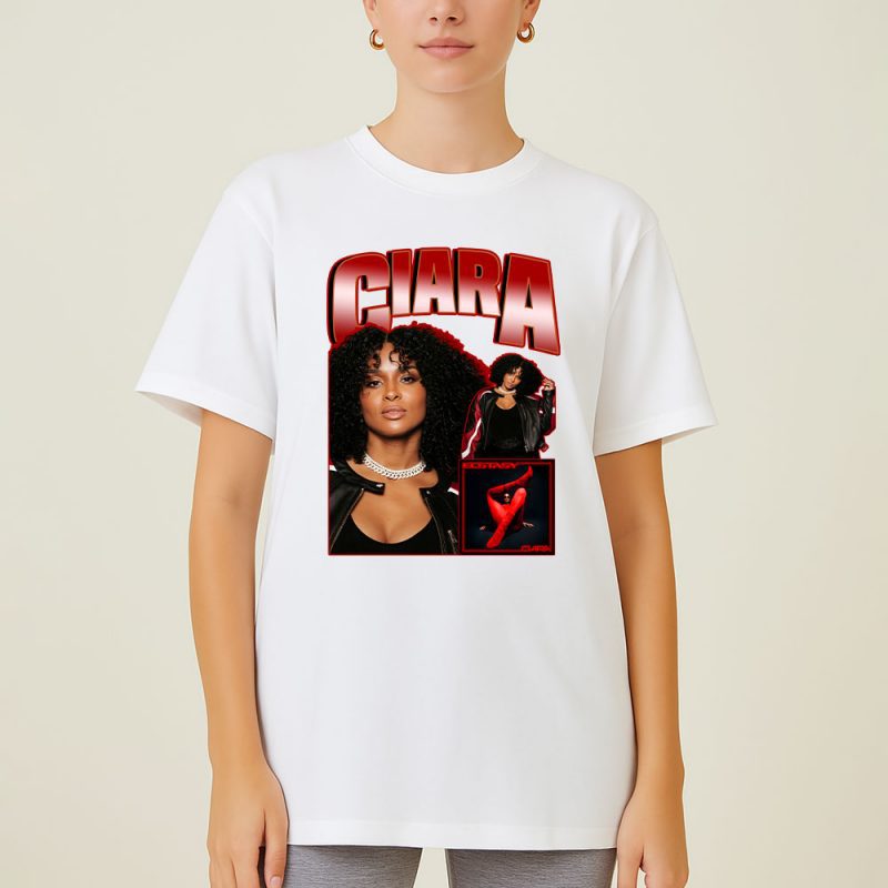 Channel Ciara’s fierce confidence and sultry edge with this bold graphic tee. A statement piece for fans who vibe with her fearless, fashion-forward energy.