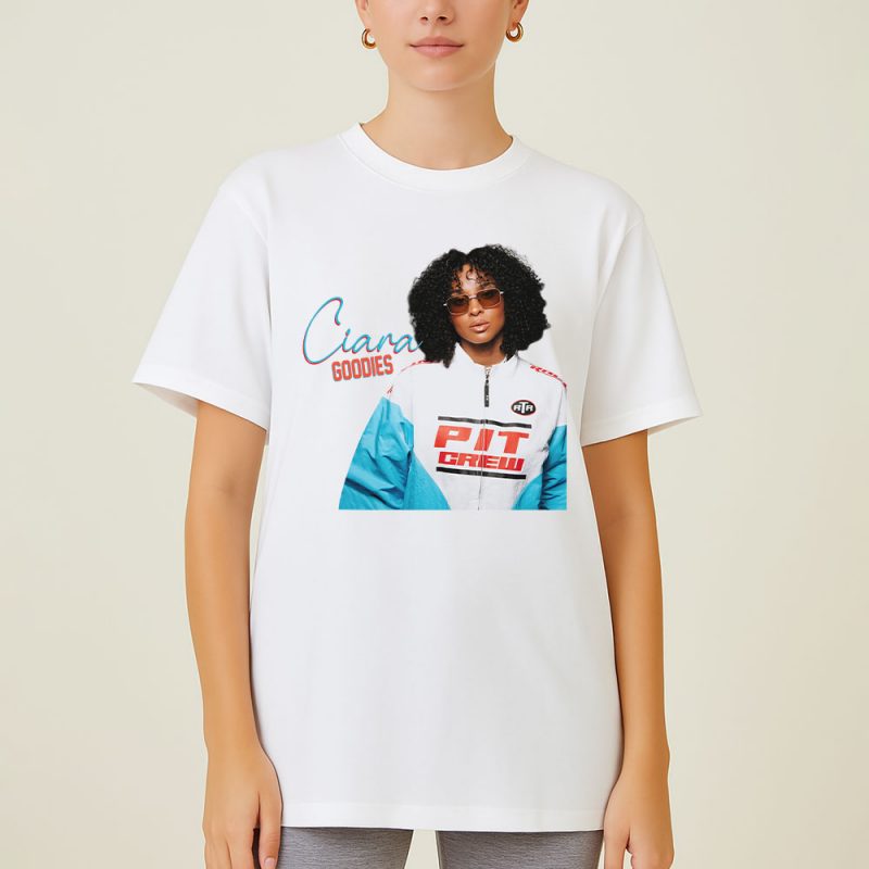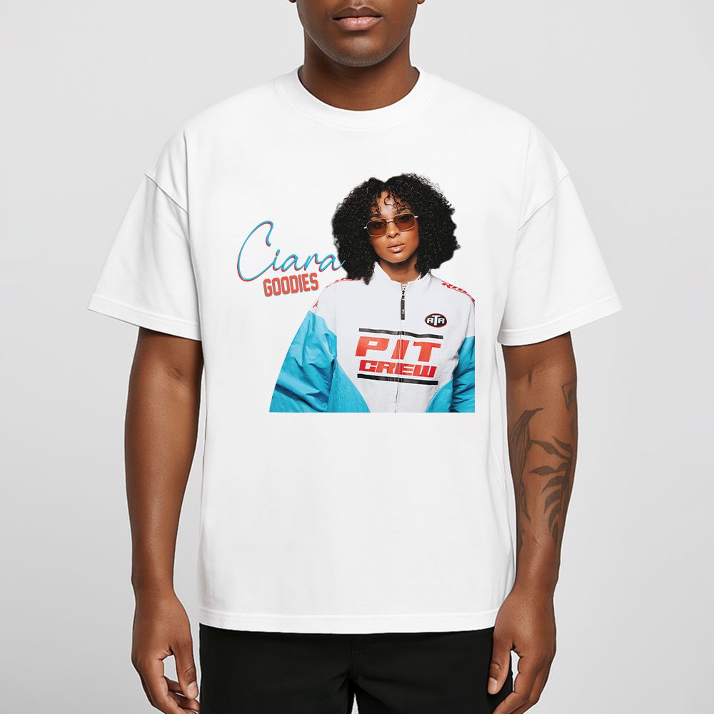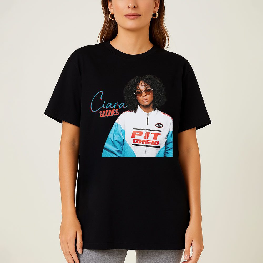 Ciara Goodies T-Shirt, Vintage Y2K Pit Crew Graphic Tee, 2000s R&B Hip Hop Merch, Retro Racing Style Shirt, Unisex Music Fan Gift