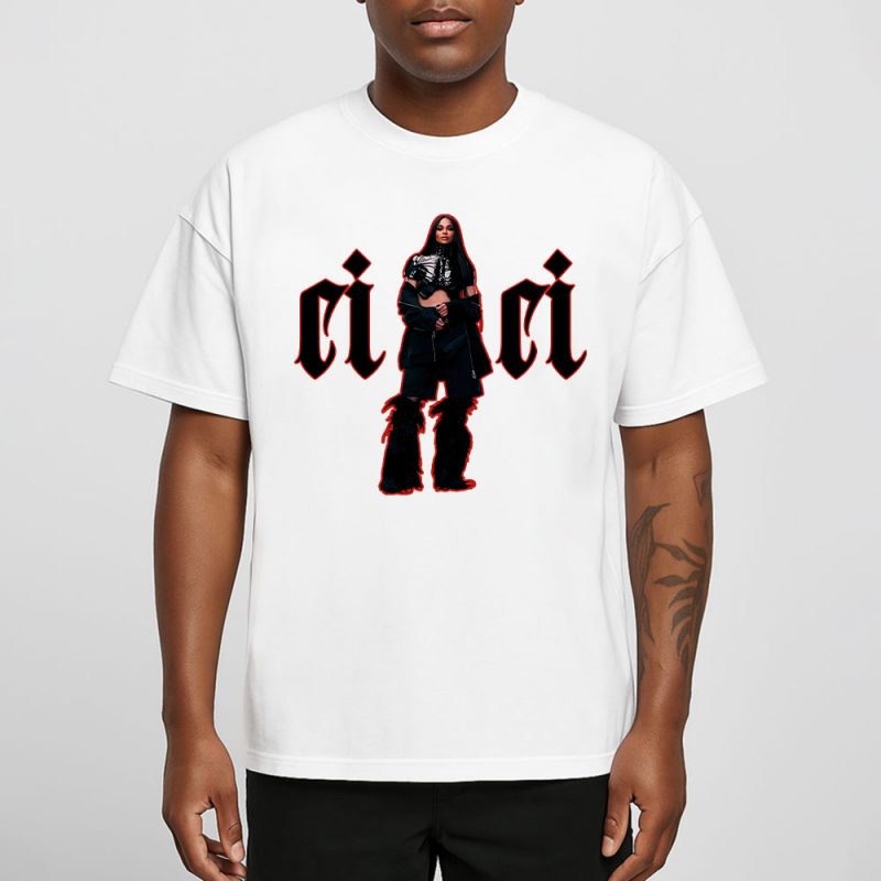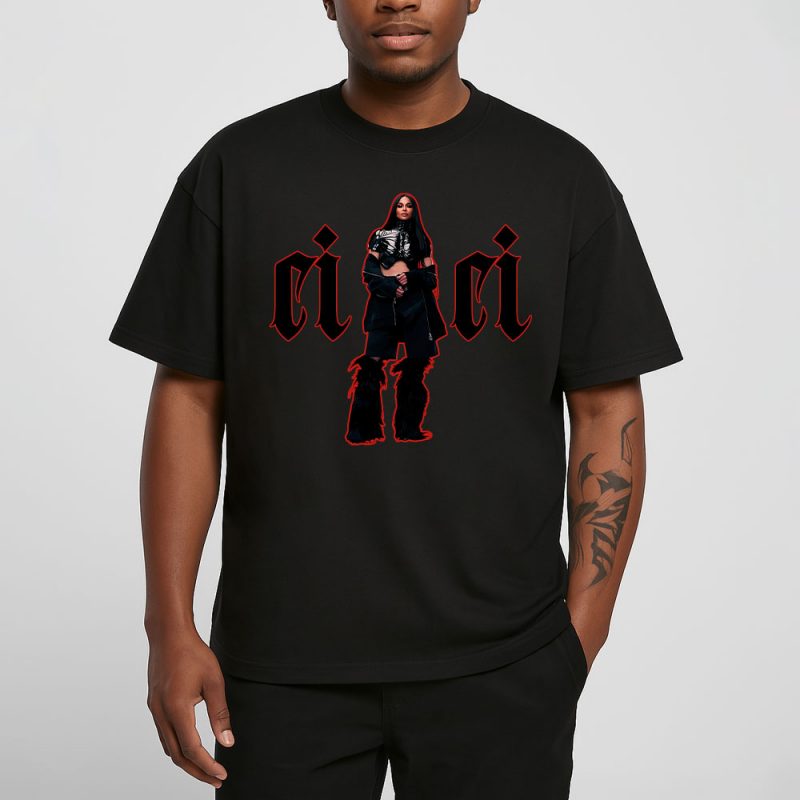 Fierce, fearless, and fashion-forward — this tee captures Ciara’s dark glam energy with bold gothic vibes. A standout piece for fans who love her unapologetic edge.