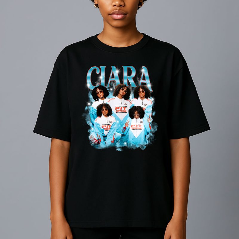 Ciara T-Shirt Retro Collage Style, Y2K Pit Crew Racing Shirt, Vintage 2000s R&B Graphic Tee, Hip Hop Music Merch for Fans, Unisex Gift