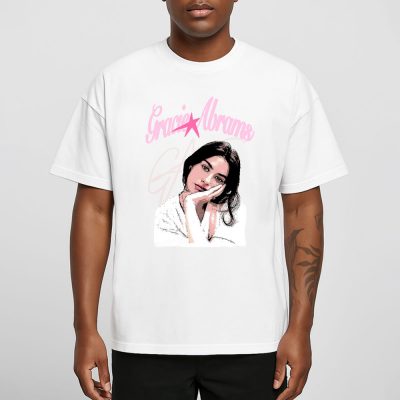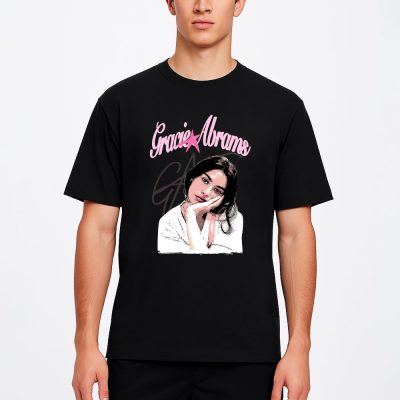 This T-shirt highlights “Gracie Abrams” in playful pink script with a stylized portrait of the singer, ideal for her dedicated fans.