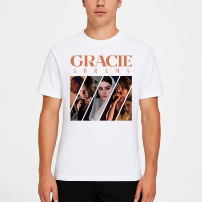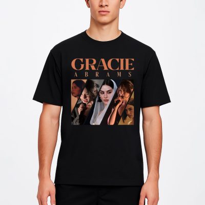 This T-shirt showcases “GRACIE ABRAMS” in striking orange text, paired with a unique portrait collage, making it a standout piece for her admirers.