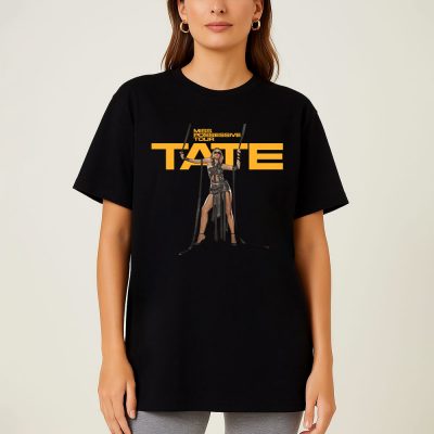 This T-shirt celebrates Tate McRae with a powerful design, showcasing her commanding pose with staffs, radiating confidence. The “MISS OBSESSIVE TOUR” text in bold yellow brings a live concert feel, ideal for fans.
