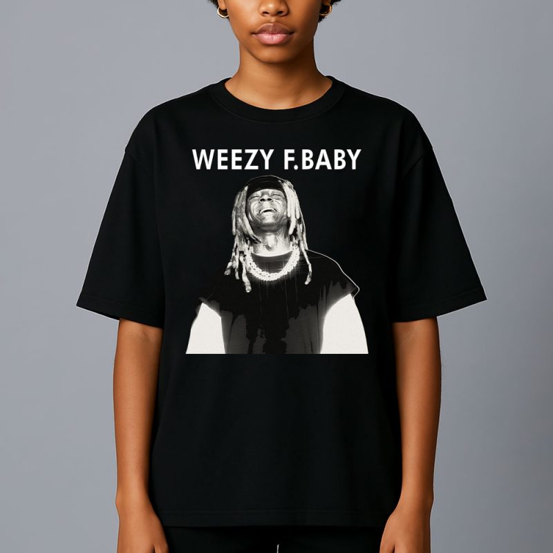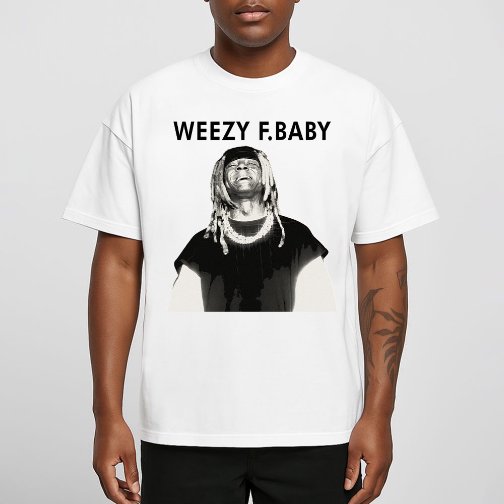 This T-shirt rocks Lil Wayne’s “Weezy F. Baby” vibe with a bold image of the rapper in a dynamic pose, dripping with chains and attitude—pure fire for any fan!
