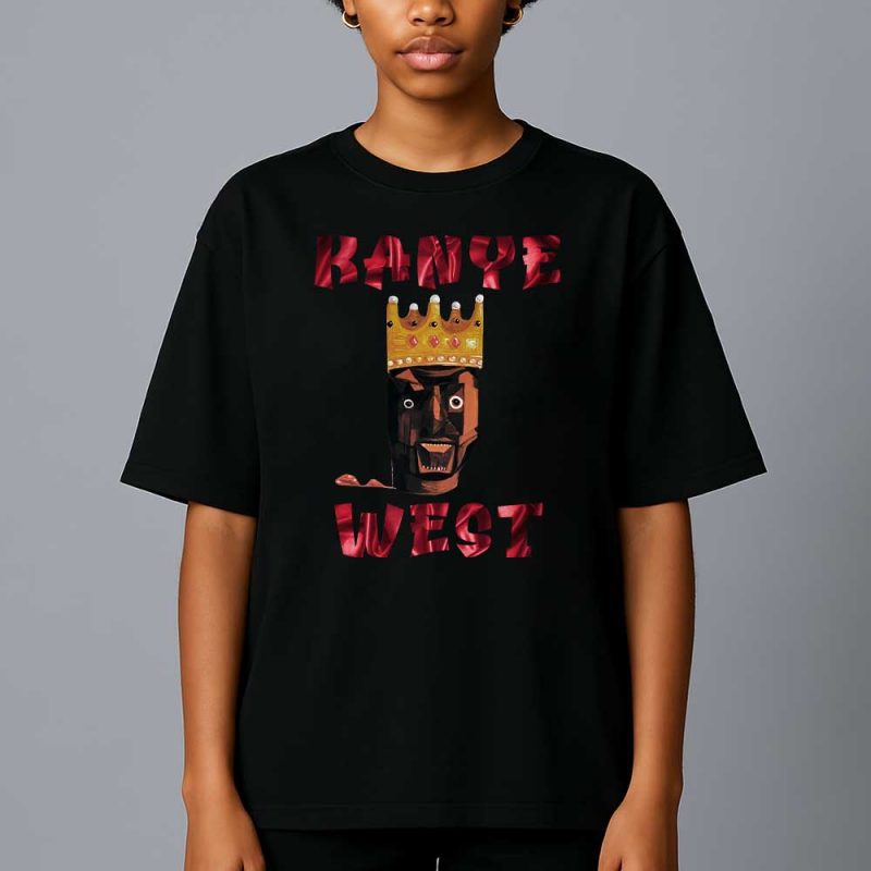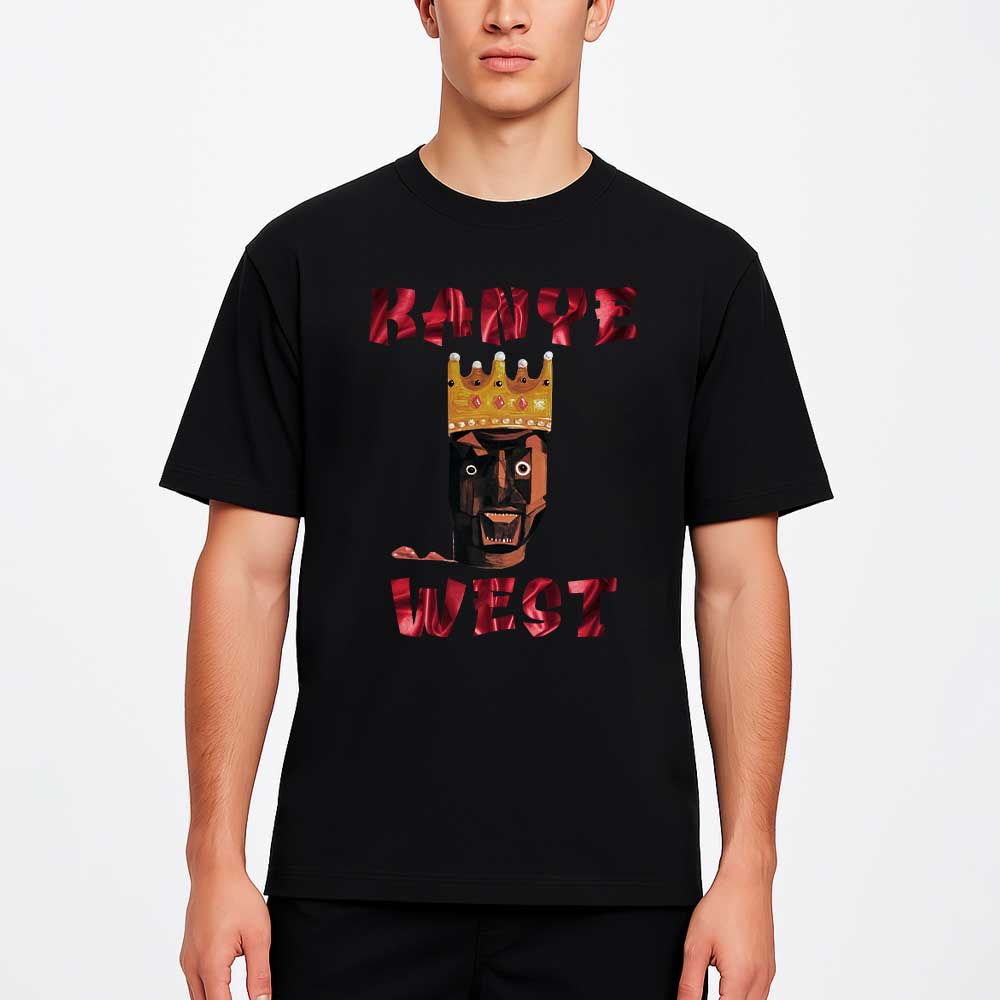 This T-shirt declares Kanye West’s reign with “Kanye West” in bold red, featuring a striking crowned figure—perfect for fans to crown their style!
