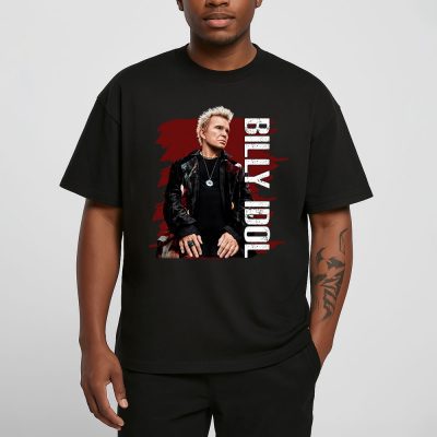 Channel rock legend style with this striking Billy Idol tee, featuring his iconic look and bold graphic backdrop. Perfect for fans who love classic punk attitude.