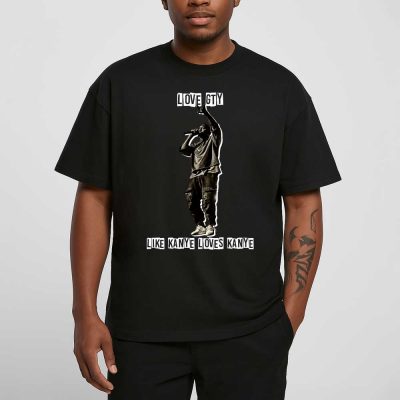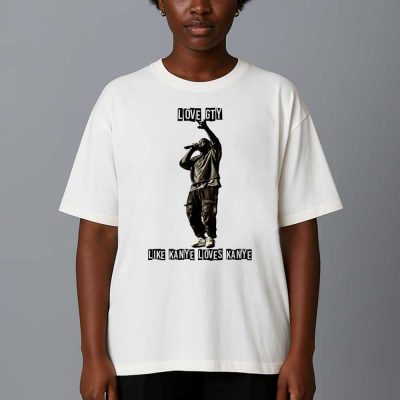 This T-shirt features Kanye West with “LOVE GTY” and “Like Kanye Loves Kanye” text, showcasing a bold image of the artist—great for fans who adore his confidence!